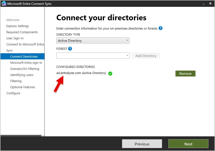You should have an Active Directory UPN Suffix that matches your Entra ID tenant domain. You can still continue if you don’t have a matching domain.